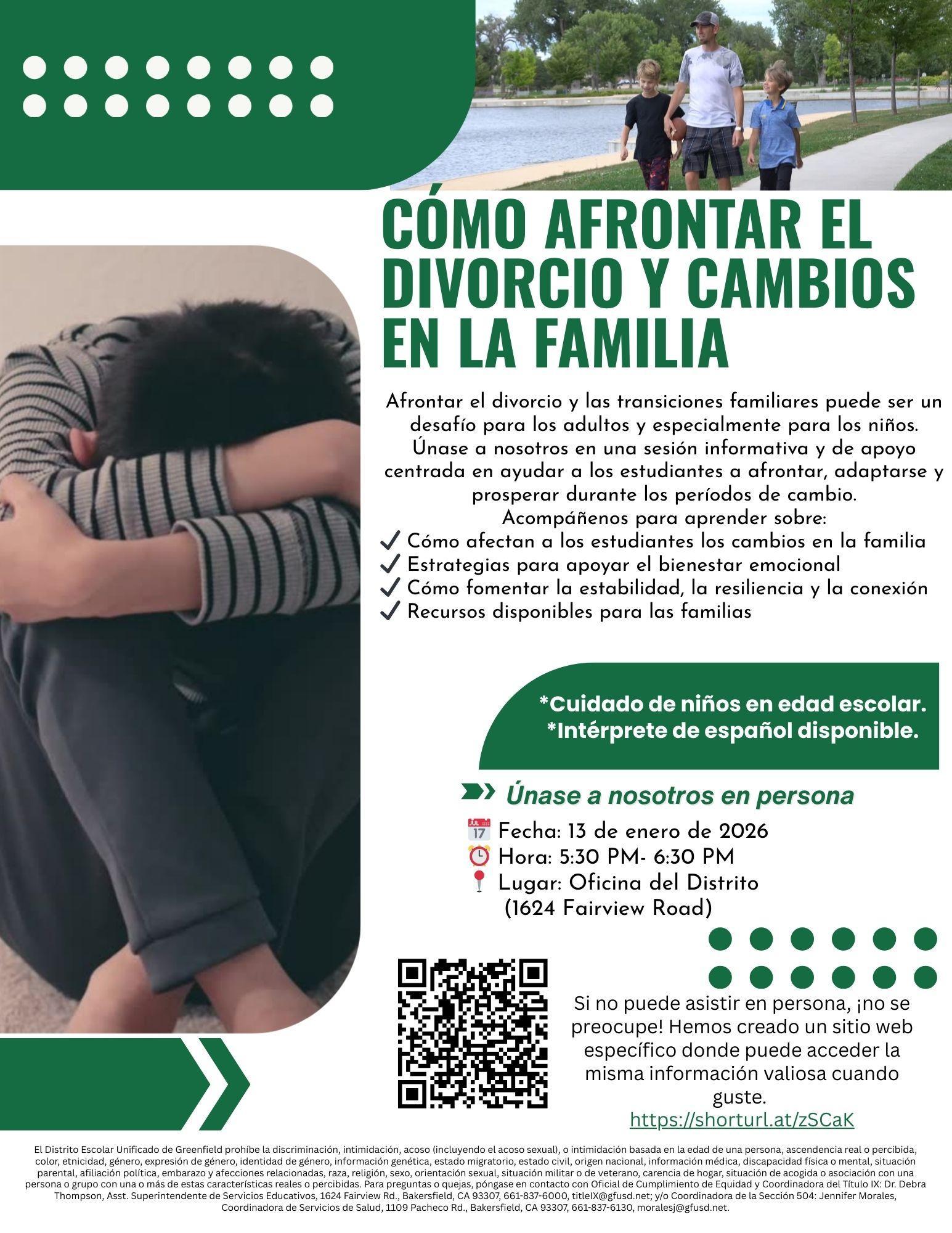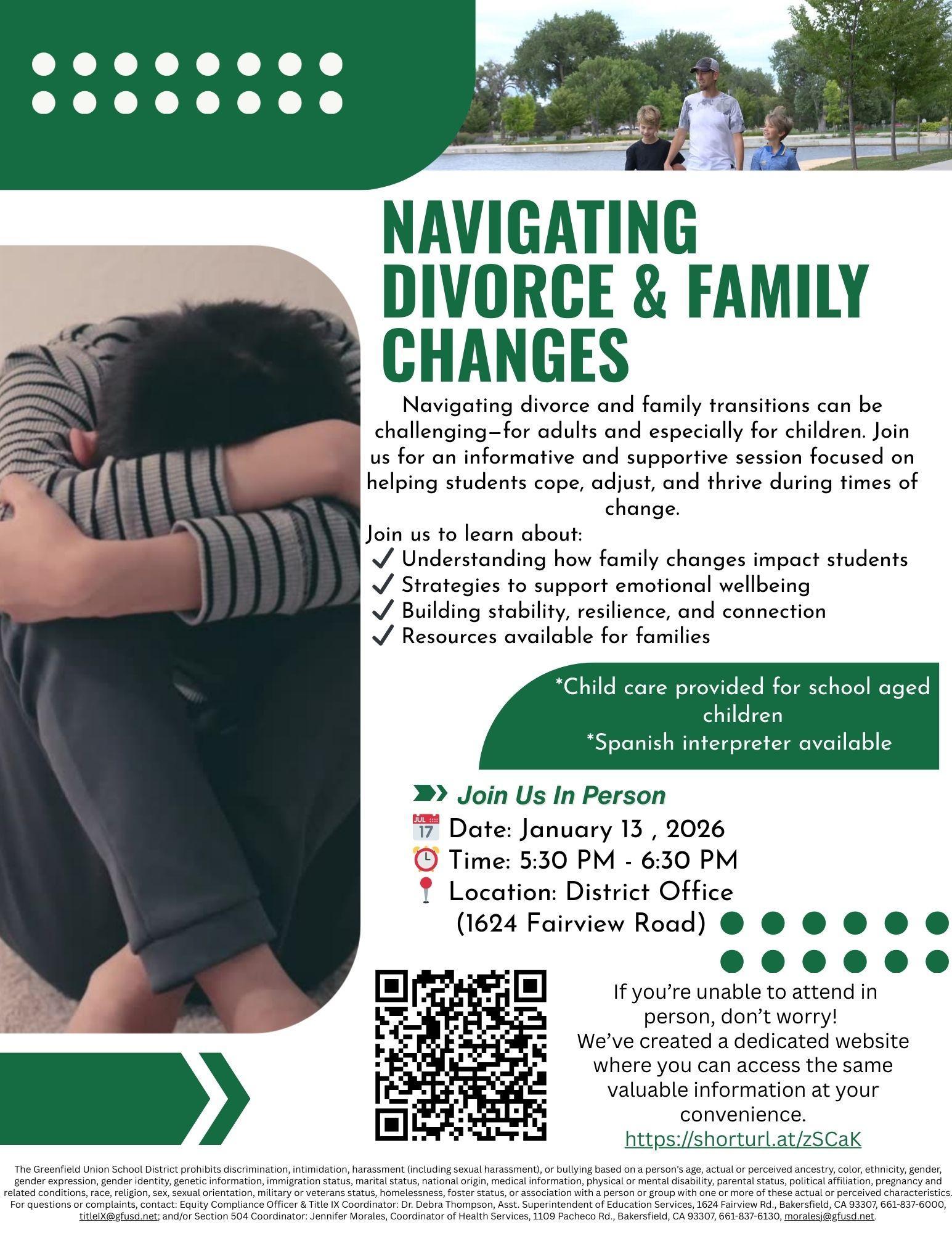 If your family is experiencing separation, divorce, or other major changes, you don’t have to navigate it alone. Join us, ask questions, and connect with resources designed to support both you and your student.